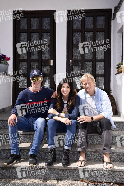 Alexandra Polzin mit Ehemann Gerhard Leinauer und dessen Sohn Hannes bei einem exklusiven Fototermin vor ihrem Haus. München, 15.04.2020