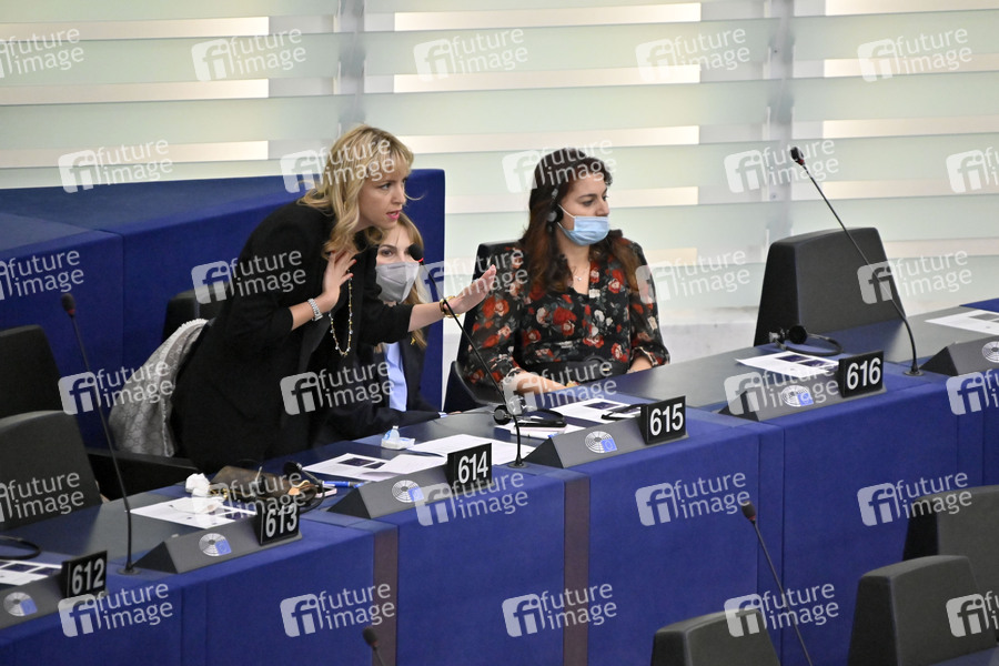 Europäisches Parlament, Plenum, Plenartagung, Plenardebatte, Plenarsitzung, Debatte, Rede, Politik, Strasbourg, Strassburg, Europaparlament, Europa-Politik, EU-Abgeordnete, EU-Parlament, EP, Parlament der Europäischen Union, European Parliament, European Union, Parlamentum Europaeum, MdEP, Mitglied des Europäischen Parlaments, Politikerin, Italien, Lega, Fraktion Identität und Demokratie, ID