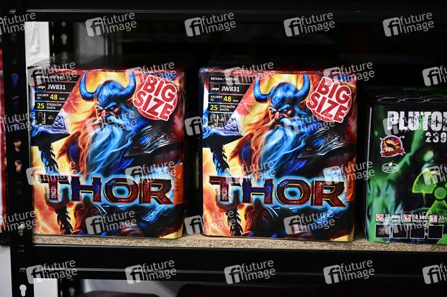 Verkauf von Feuerwerk auf dem Wochenmarkt im Deutsch-Polnischen Grenzgebiet. In Deutschland ist Feuerwerk der Kategorie 3 verboten. Wenige Tage vor dem Jahreswechsel warnen Feuerwehr und Polizei vor dem Abbrennen illegaler Pyrotechnik. Durch den unsachgemäßen Umgang mit in Deutschland nicht zugelassenem Feuerwerk können schweren Verletzungen entstehen. Denn in der Nacht zum Jahreswechsel wird immer wieder auf sogenannte Polen-Böller zurückgegriffen, die in Deutschland keine Zulassung haben. Die Zulassung von Feuerwerk unterliegt in Deutschland strengen Vorgaben, die im Sprengstoffgesetz geregelt sind. Danach dürfen nur Silvesterknaller mit einer Nettosprengmasse von maximal 6 Gramm verkauft werden. (Symbolfoto, Themenfoto) Görlitz-Zgorzelec, 29.12.2025