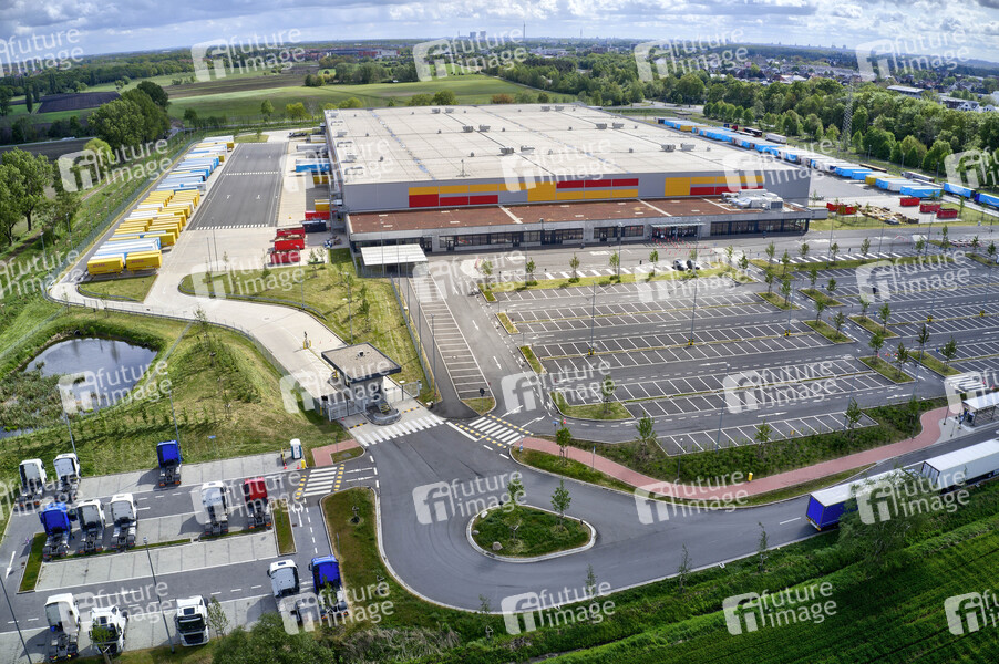 Amazon Logistik HAJ8, Logistikzentren, Lager, Versandzentrum, Luftaufnahme, Unternehmen, Versandhändler, Onlinehandel, Onlineversandhändler, Marktführer des Handels im Internet, Amazon.com. Marktmacht, Wirtschaft, Verteilzentrum, Sortierhallen