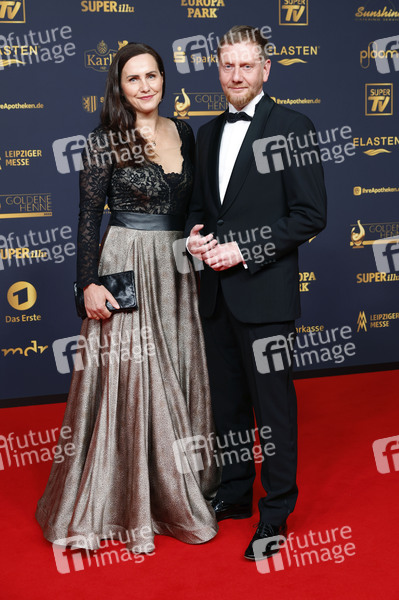 Michael Kretschmer mit Lebensgefährtin Annett Hofmann bei der 31. Verleihung der Goldenen Henne 2025 in der Leipziger Messe. Leipzig, 12.09.2025