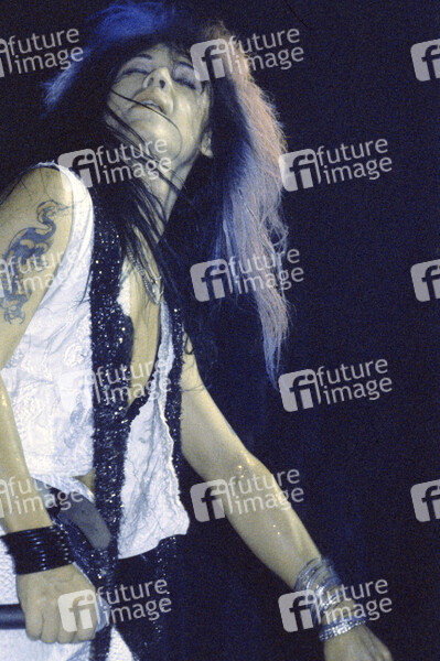 Kim Hooker von Tigertailz live im Astoria Theatre. London, 10.06.1988