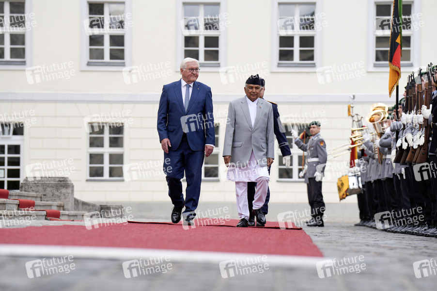 Frank-Walter Steinmeier und Ram Chandra Paudel beim Empfang des Präsidenten von Nepal mit militärischen Ehren im Schloss Bellevue. Berlin, 17.06.2024