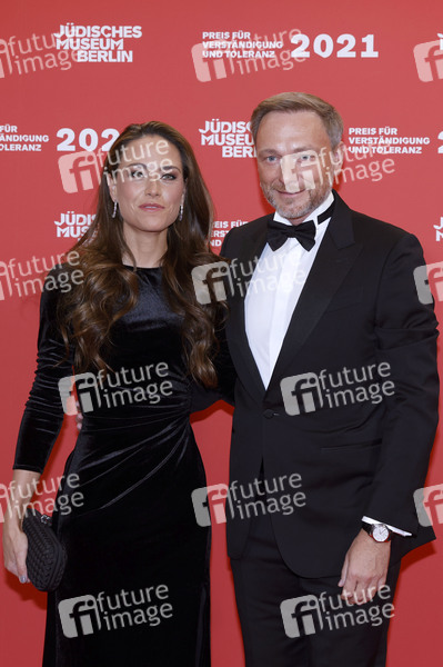 Christian Lindner mit Partnerin Franca Lehfeldt bei der Verleihung des 'Preises für Verständigung und Toleranz' im Glashof des Jüdischen Museums. Berlin, 13.11.2021