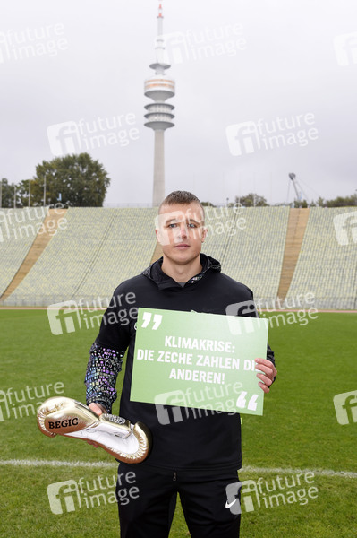 Alem Begic beim Fototermin zur sportichen '#WocheChallenge' im Olympiastation München. Unter dem Motto 'Wir können was bewegen!' ruft die Welthungerhilfe zu dieser Challenge auf und bittet um Spenden für eine Welt ohne Hunger. München, 13.10.2020