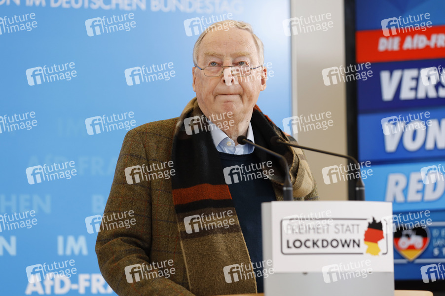 Alexander Gauland bei einem Pressestatement der AfD vor der Fraktionssitzung auf der Fraktionsebene im Reichstagsgebäude. Berlin, 23.03.2021