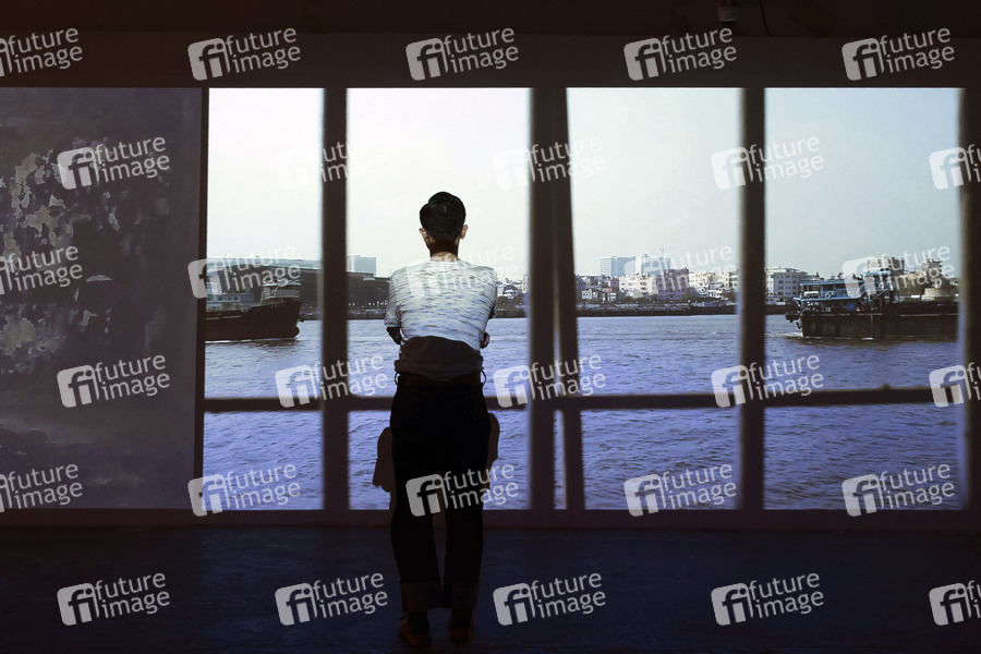 Lee Kai Chung in seiner Ausstellung. Er betreibt künstlerische Forschung zu historischen Ereignissen, politischen Systemen und Ideologien. Macau, 23.02.2024