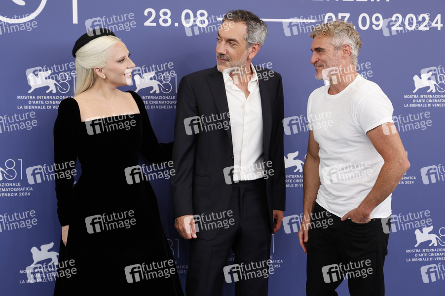Lady Gaga, Todd Phillips und Joaquin Phoenix beim Photocall zum Kinofilm 'Joker: Folie à Deux' auf der Biennale di Venezia 2024 / 81. Internationale Filmfestspiele von Venedig im Palazzo del Casino. Venedig, 04.09.2024