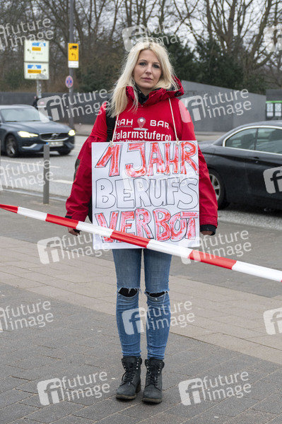 Melanie 'Melli' Wellendorf, Inhaberin Musik-Kneipe NahBar, bei der Protest-Veranstaltung Alarmstufe Rot - Alster in Flammen an den Messehallen am Heinrich-Hertz-Funkturm. Die Veranstalter wollen ein Zeichen setzen, dass mit vernünftigen Sicherheits- & Hygienemaßnahmen ( Testung, Anmeldung, App ) Öffnungen wie Gastronomie, Theater, Kinos, Fitnessstudios, entsprechende kulturelle Veranstaltungen etc. machbar sind. Hamburg, 20.03.2021