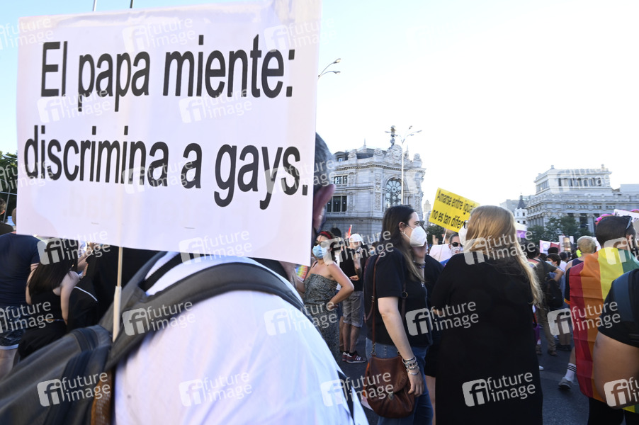 Wegen der Coronakrise nimmt die LGBT-Community viele ihrer Veranstaltungen online wahr. Etliche Aktivisten gingen trotzdem zur Guia del Orgullo LGTBI / Gay Pride Parade 2020 auf die Straße. Madrid, 28.06.2020