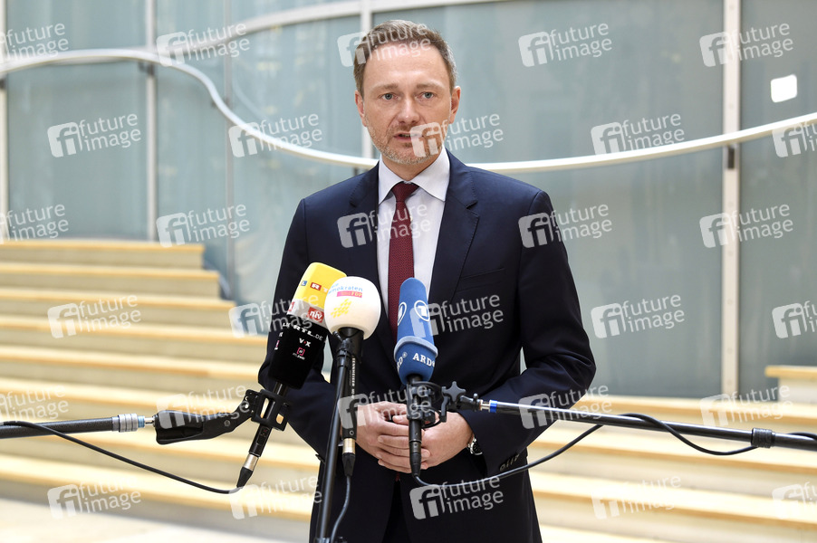 Christian Lindner bei einem Statement der FDP zur politischen Lage im Jakob-Kaiser-Haus. Berlin, 05.05.2021
