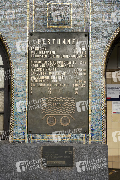Alter Elbtunnel, St.Pauli Elbtunnel, eröffnet 1911, unterquert die Norderelbe, Länge 426.5 Meter, Tunnel, zwei Tunnelröhren, öffentlicher Verkehrsweg, Fußgängerweg, Radweg, Historisches Wahrzeichen der Ingenieurbaukunst in Deutschland