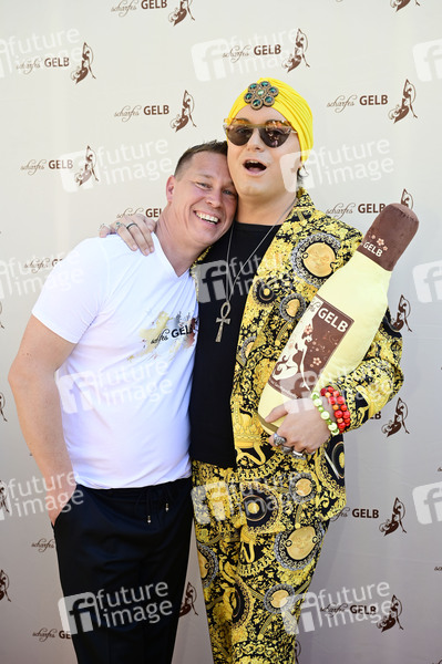 Heiko Tänzer und Julian F.M. Stoeckel bei der Party zum 15. Firmenjubiläum der Eierlikörfabrik am Firmensitz der scharfesGELB-Manufaktur. Senftenberg, 01.05.2025