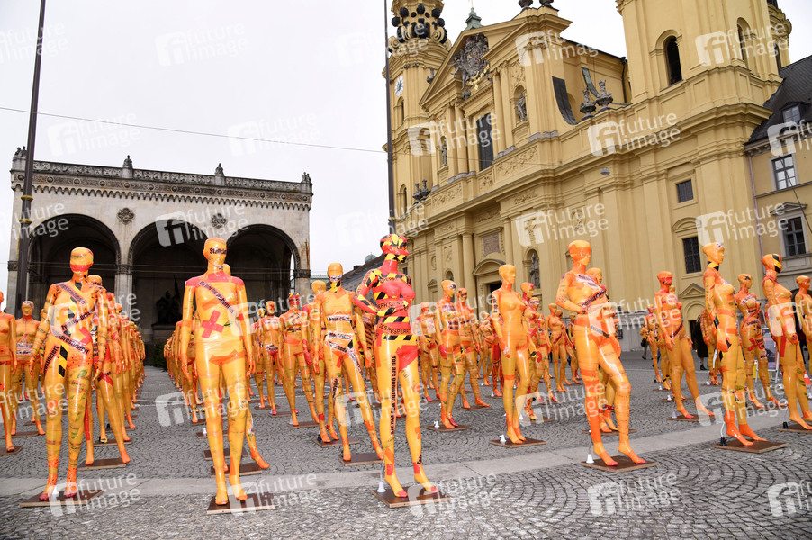 Die Kunst-Installation 'Broken' von Dennis Josef Meseg als Mahnmal gegen Gewalt an Frauen auf dem Odeonsplatz. München, 08.12.2020