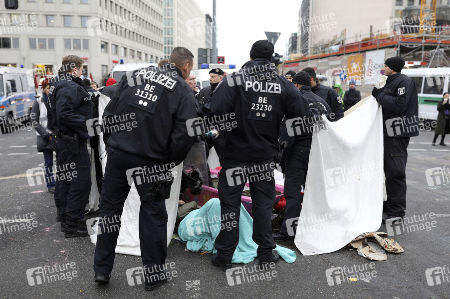 Aktivisten der Klimabewegung 'Extinction Rebellion' blockieren den Potsdamer Platz. Berlin, 08.10.2019
