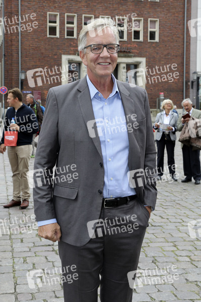 Dietmar Bartsch bei der Städtetour der Partei Die Linke zur Bundestagswahl 2021 mit dem Motto 'Sozial gerecht. Vor Ort. Jetzt!' auf dem Alten Markt. Stralsund, 28.08.2021