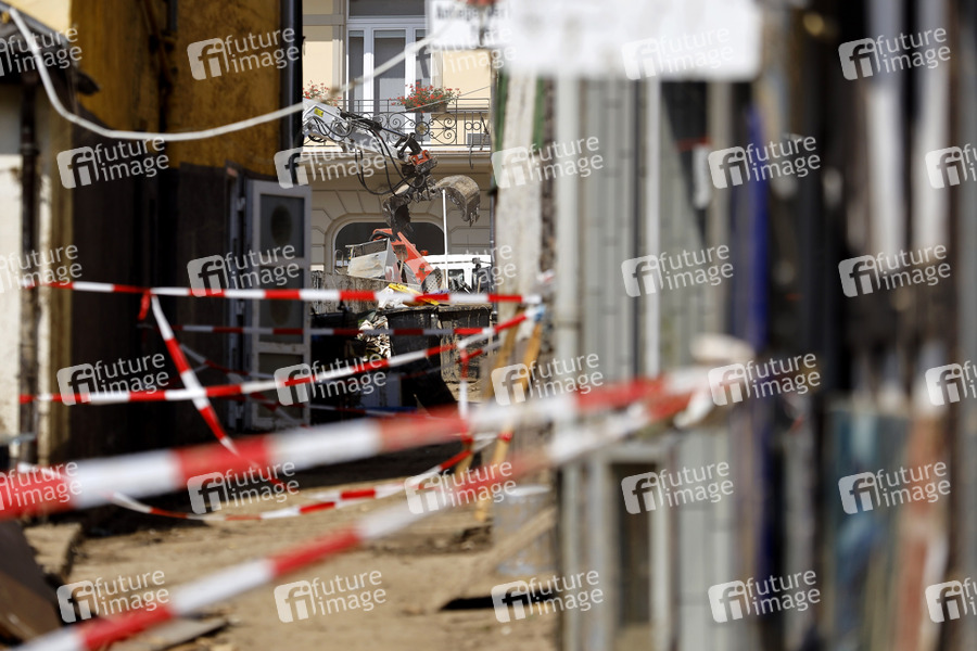 Nach dem Jahrhunderthochwasser in der Eifel durch heftige Regenfälle und Dauerregen mit Überschwemmungen und Überflutungen haben die Aufräumarbeiten im Ahrtal begonnen. Einheiten von Polizei, THW, Bundeswehr und Feuerwehr mitsamt vielen freiwilligen Helfern räumen Straßen, entfernen Schutt und Schlamm und versorgen die Menschen. Im Bild zerstörte Häuser in der Ortschaft Altenahr, in der die Flut viele Häuser zerstörte, 22.07.2021