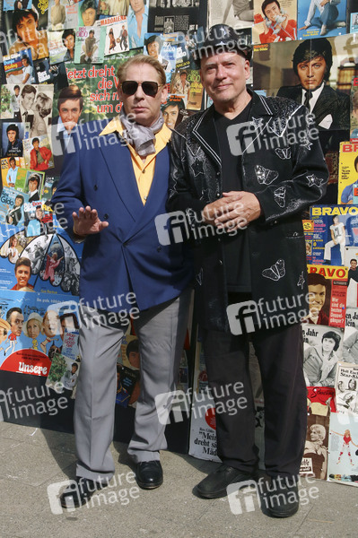 Ben Becker und Rosa von Praunheim beim Fototermin am Set des ARD Dokudramas 'Der letzte Tanz - Die Rex-Gildo-Story' auf dem rbb-Gelände. Berlin, 16.08.2021