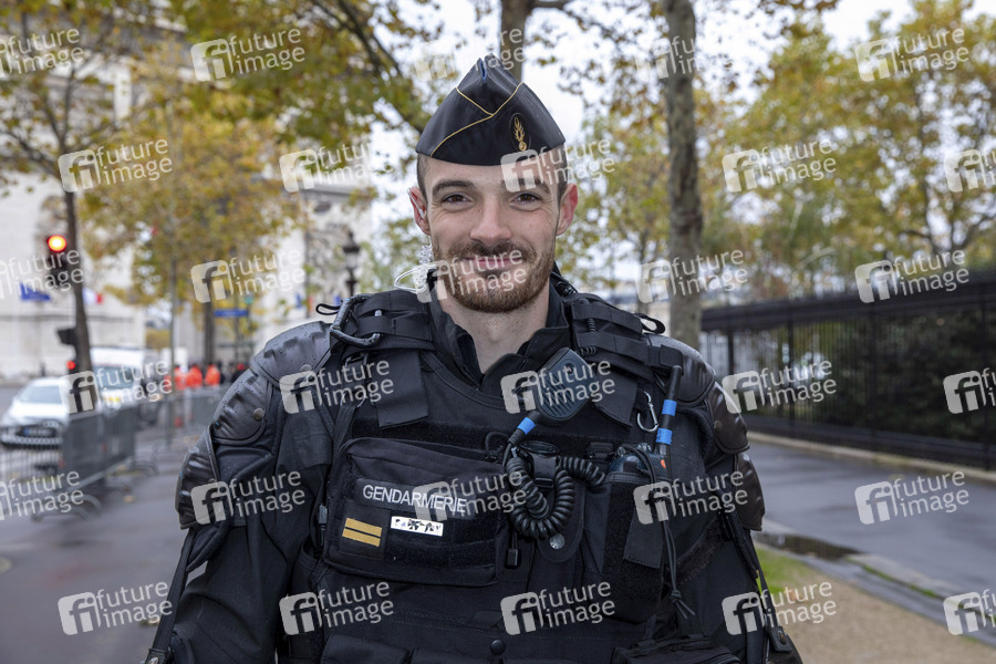 Polizei bei der 101. Jahrfeier des Waffenstillstands von 1918 am Triumphbogen. Paris, 11.11.2019