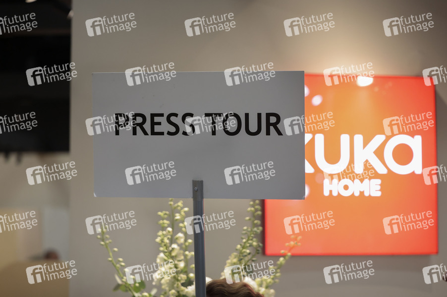 Schild Press Tour beim Presserundgang zur Eröffnung der imm cologne - World of Interiors, der Fachmesse für Möbel und Innenraumgestaltung, in der Koelnmesse, Köln, 20.01.2026