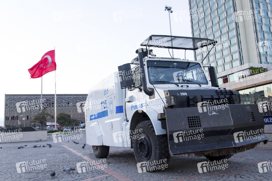 Die türkischen Oppositionsparteien und die Gewerkschaften planen am Maifeiertag einen Marsch zum Taksim-Platz. Ministerpräsident Recep Tayyip Erdogan will diese Versammlungen verhindern. 40.000 Polizeibeamte mit 50 Wasserwerfern werden eingesetzt um das Verbot durchzusetzen. Istanbul, 01.05.2014