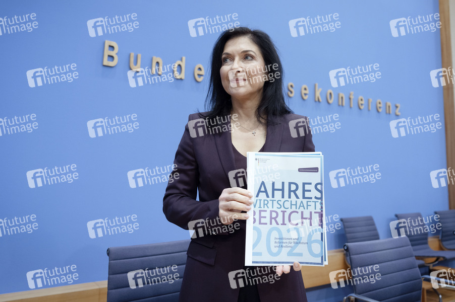 Katherina Reiche bei der Bundespressekonferenz 'Vorstellung des Jahreswirtschaftsberichts 2026 der Bundesregierung' im Haus der Bundespressekonferenz. Berlin, 28.01.2026