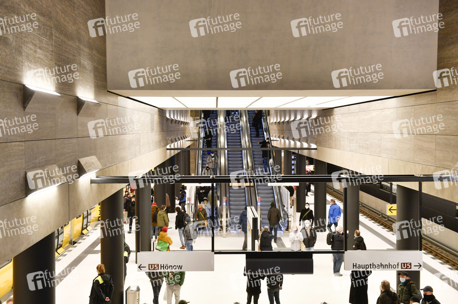 Lückenschluss U5, U5-Neubaustrecke, Kanzler-U-Bahn, Architektur, Bahnhof, Berliner Verkehrsbetriebe, BVG, Eröffnung, Fahrgast, Fahrgäste, indoor, innen, Metro, Mobilität, Nahverkehr, Nahverkehrsmittel, öffentlicher Personennahverkehr, Opening, ÖPNV, Passagiere, Personennahverkehr, UBahn, U-Bahn, U-Bahnhof, Underground, Verkehr