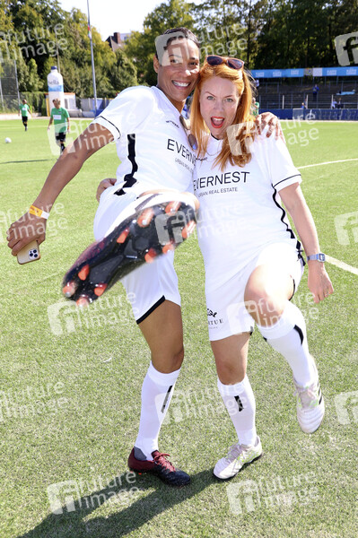 Annabelle Mandeng und Esther Roling beim Benefiz-Fußballspiel 'Kicken mit Herz' 2022 zu Gunsten des Herzzentrums des UKE im Stadium des SC Victoria. Hamburg, 04.09.2022