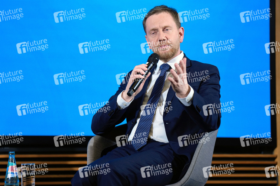 Michael Kretschmer beim 5. Gespräch zur Transformation 'Wie gelingen Wertschöpfung und Wertschätzung?' im Ludwig-Erhard-Saal des Bundeswirtschaftsministeriums. Berlin, 11.03.2024