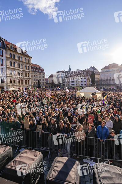 Demonstration unter dem Motto 'Wir sind die Brandmauer' gegen die AfD und den Rechtsruck auf dem Neumarkt. Dresden, 25.02.2024