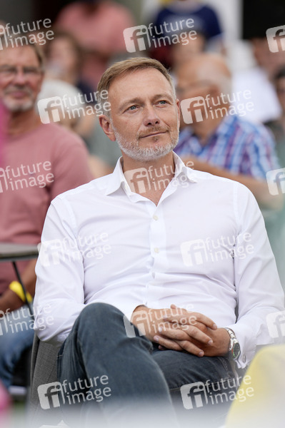 Christian Lindner bei einer Wahlkampfveranstaltung der FDP zur Landtagswahl in Brandenburg im Mahlower Seebad. Blankenfelde-Mahlow, 15.08.2024