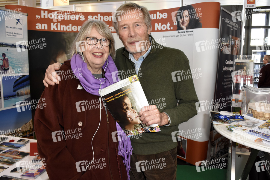 Horst Janson mit Ehefrau Helgardt Hella Ruthardt unterstützen 'Das Reisebüro der Menschlichkeit' auf der f.re.e. Reise- und Freizeitmesse in der Neuen Messe. München, 21.02.2020