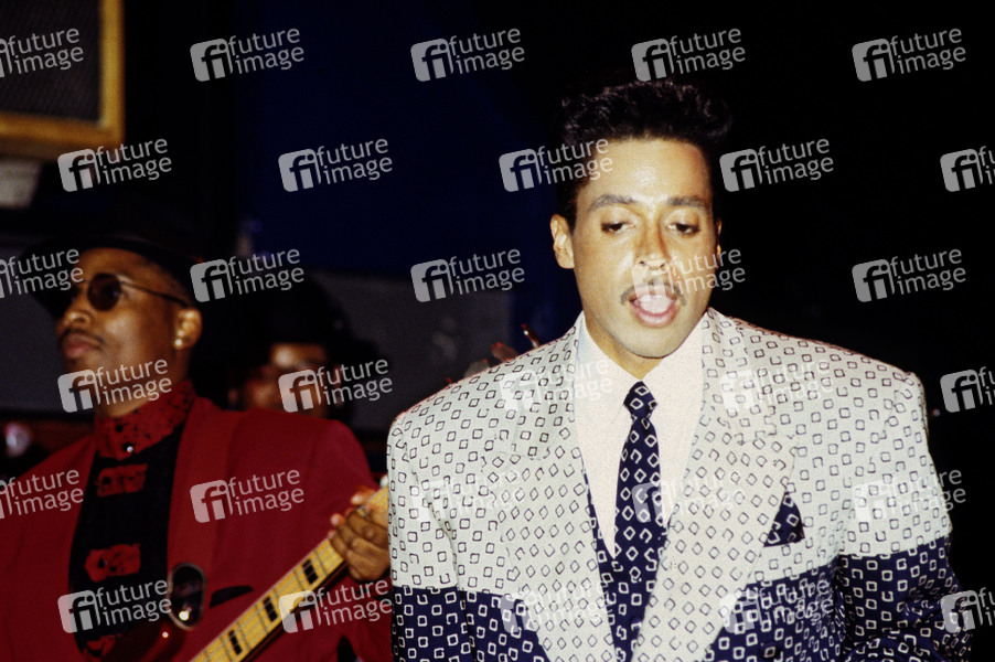 Terry Lewis und Morris Day von The Time live bei einem Showcase zum Album 'Pandemonium' im Subterania. London, 31.08.1990