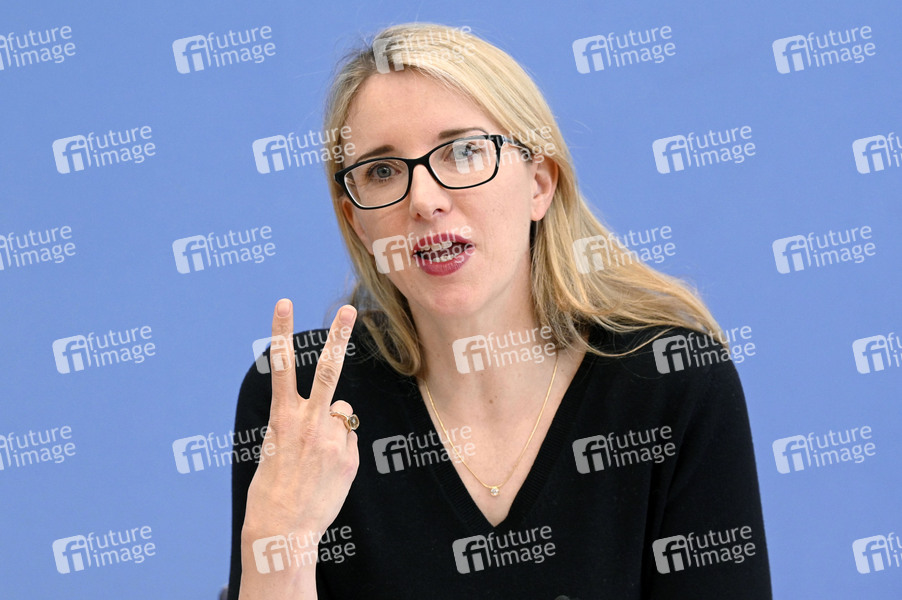Prof. Dr. Alena Buyx bei der Pressekonferenz zur Vulnerabilität und Resilienz in der Krise - Ethische Kriterien für Entscheidungen in einer Pandemie im Haus der Bundespressekonferenz. Berlin, 04.04.2022