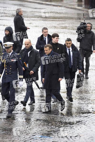 Politiker, Staatspräsident von Frankreich, La République en Marche, cérémonies du 101ème anniversaire de l’Armistice de 1918, Politik, Euroapolitik, Weltpolitik, Zeremonie, Feierlichkeiten, Feierlichkeit, Staatengemeinschaft, Internationale Organisationen, Verbündete, Militär, Soldaten