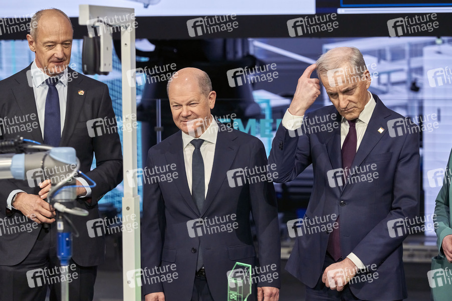 Deutsche Messe AG, Hannover Messe Industrie, Weltleitmesse der Industrie, Industriemesse, Industrieschau, Automatisierung, IT-Sicherheit, KI, Technologie, Wirtschaft, Ausstellung, Fair, Messe, Eröffnung, Opening, Leitmesse, Synergie und Kooperation, Wasserstoff & Brennstoffzellen, CO2-neutrale Produktion, Energizing a Sustainable Industry, Partnerland Norwegen, CEO von Siemens, Bundeskanzler, SPD, Jonas Gahr Støre, Jonas Gahr Störe, Politiker, Ap, Ministerpräsident von Norwegen