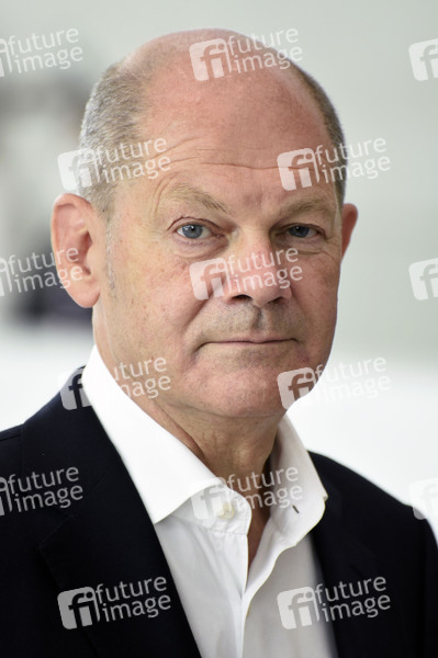 Olaf Scholz bei einem Statement nach einem Unternehmensbesuch bei der Merk KGaA im Innovation Center. Darmstadt, 26.08.2021