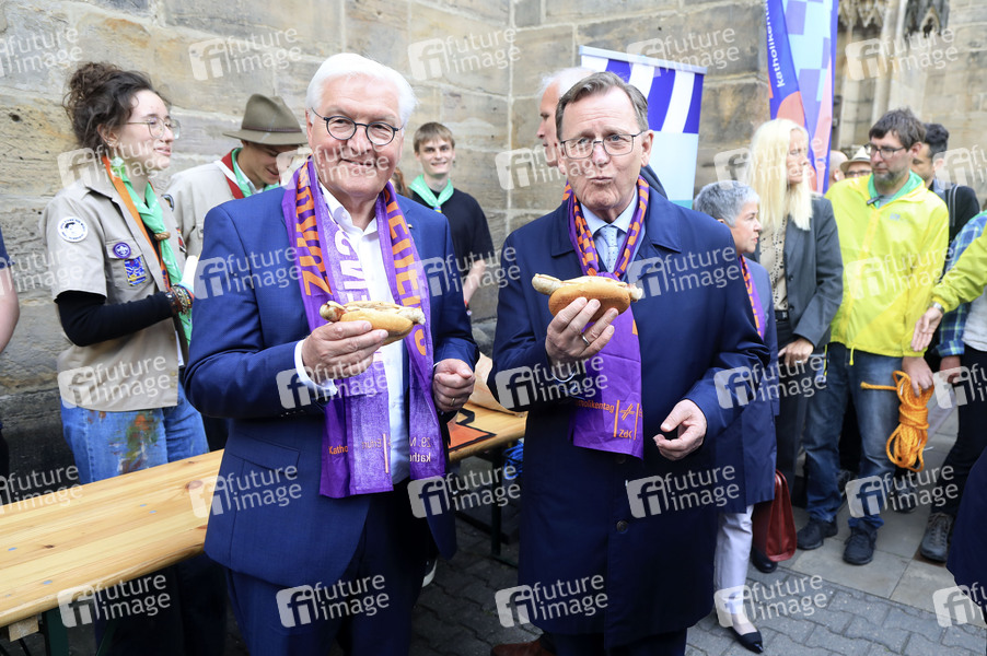 Frank-Walter Steinmeier und Bodo Ramelow beim Rundgang nach der Eröffnungsfeier des 103. Deutschen Katholikentages auf dem Erfurter Domplatz. Erfurt, 29.05.2024