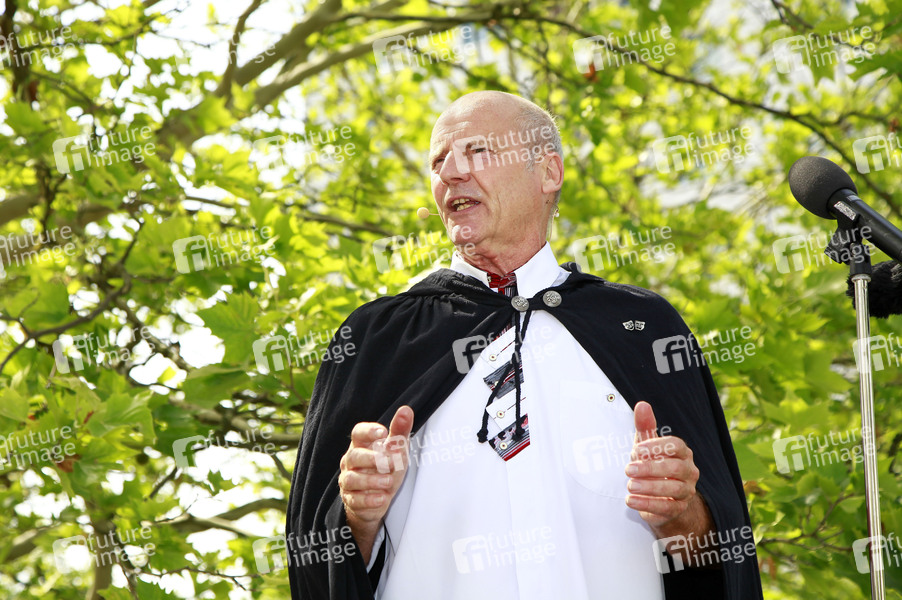 Beppo Küster mit seiner Protest-Show 'Galgen-Humor' vor dem Pflegestützpunkt Marzahn-Hellersdorf. Berlin, 15.06.2019