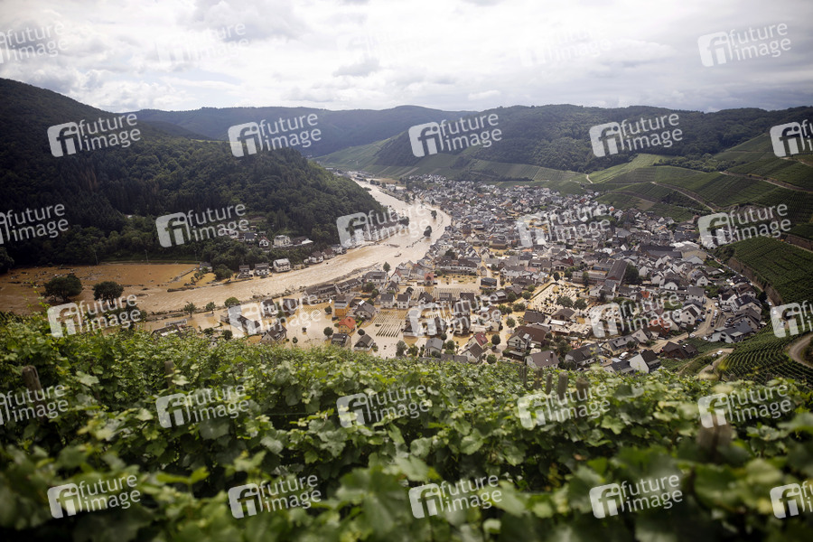 In der Eifel haben heftige Regenfälle und Dauerregen für Überschwemmungen und Überflutungen gesorgt. Im Ahrtal trat der Fluss vielerorts über die Ufer und überschwemmte nicht nur Keller sondern ganze Ortschaften. Im Bild der Ort Dernau (Landkreis Ahrweiler), der beinahe komplett von den Wassermassen geflutet wurde. Viele Menschen verloren alles. Dernau, 15.07.2021