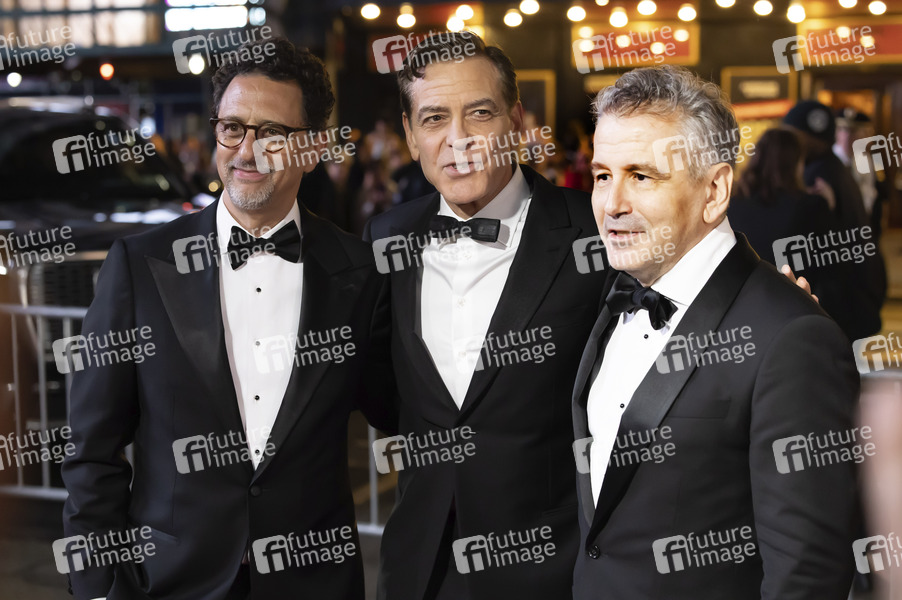 Grant Heslov, George Clooney und David Cromer bei der Broadway-Premiere des Theaterstücks 'Good Night, and Good Luck' im Winter Garden Theatre. New York, 03.04.2025