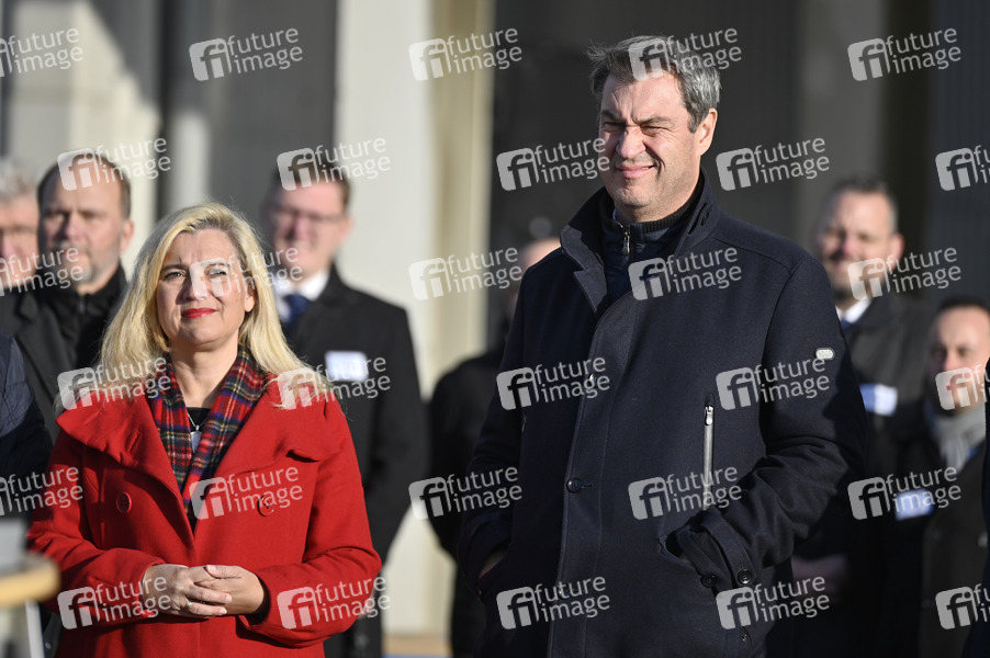 Melanie Huml, Markus Söder bei der Jubiläumsveranstaltung '30 Jahre Main-Donau-Kanal' am Bamberger Hafen. Bamberg, 25.11.2022