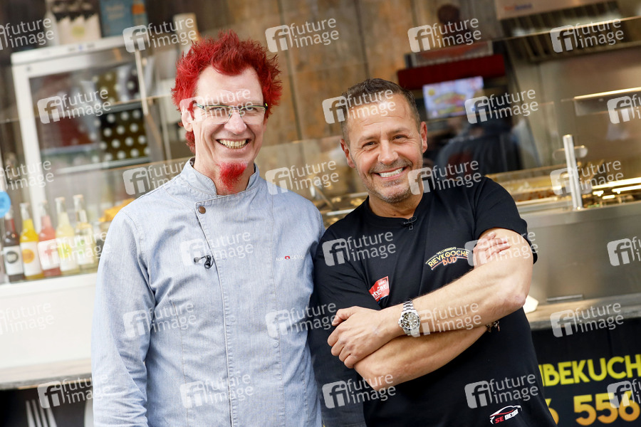 Prominenz, Celebrity, Celebrities, Fotocall, Photocall, Präsentation, Unterhaltung, Entertainment, Food Truck, Truck, Reibekuchen Truck, Willi Herrens Rievkooche Bud, TV-Koch, Schauspieler, Sänger, Entertainer