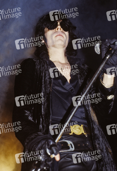 Andrew Eldritch von The Sisters of Mercy live beim Halloween-Konzert im Lyceum. London, 31.10.1984
