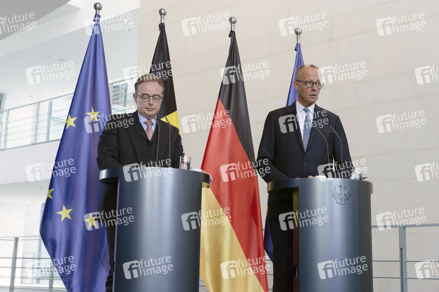 Bart de Wever und Friedrich Merz beim Empfang des Premierministers von Belgien mit militärischen Ehren zu einem gemeinsamen Gespräch mit anschließendem Pressestatement im Bundeskanzleramt. Berlin, 26.08.2025