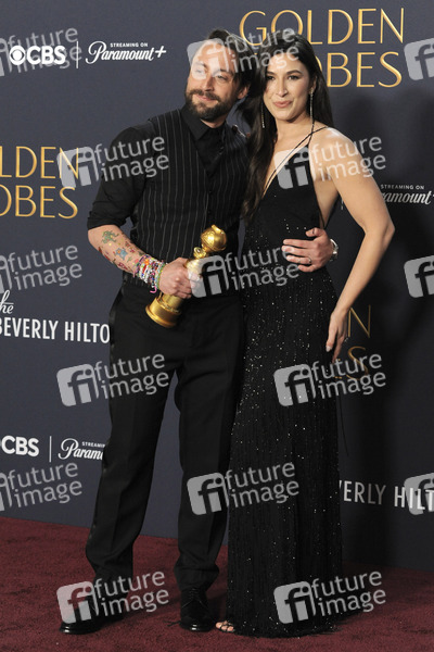 Kieran Culkin und Ehefrau Jazz Charton mit dem Preis für den besten Nebendarsteller in 'A Real Pain' bei der Verleihung der 82. Golden Globe Awards 2025 im Beverly Hilton Hotel. Beverly Hills, 05.01.2025