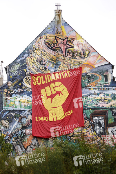 Internationale, Solidarität, Solidaritätsbekundung, 1. Mai, Erster Mai, Proteste, Links, Linksextreme, politische Linke, Kommunismus, solidarisch, politische Gefangene, Linksextremismus, Verfassungsschutz, Verfassungsschutzbericht, Antifa, Antifaschismus, linksextrem, linksradikal, Gesellschaftsordnung, Systemfrage, Widerstand, Umsturz, Revolution, revolutionär, politisch, DGB, Arbeitnehmer, Arbeiter, Tag der nationalen Arbeit, Tag der Arbeit, Kampftag, Arbeiterklasse, Feiertag, Arbeiterrechte, Gewerkschaften, Sozialismus, Protestplakat, Protest, politische Aussage, Politik, Kultur, linksalternativ, Alternative, Autonome, linksautonom, Symbolbild, Symbolfoto