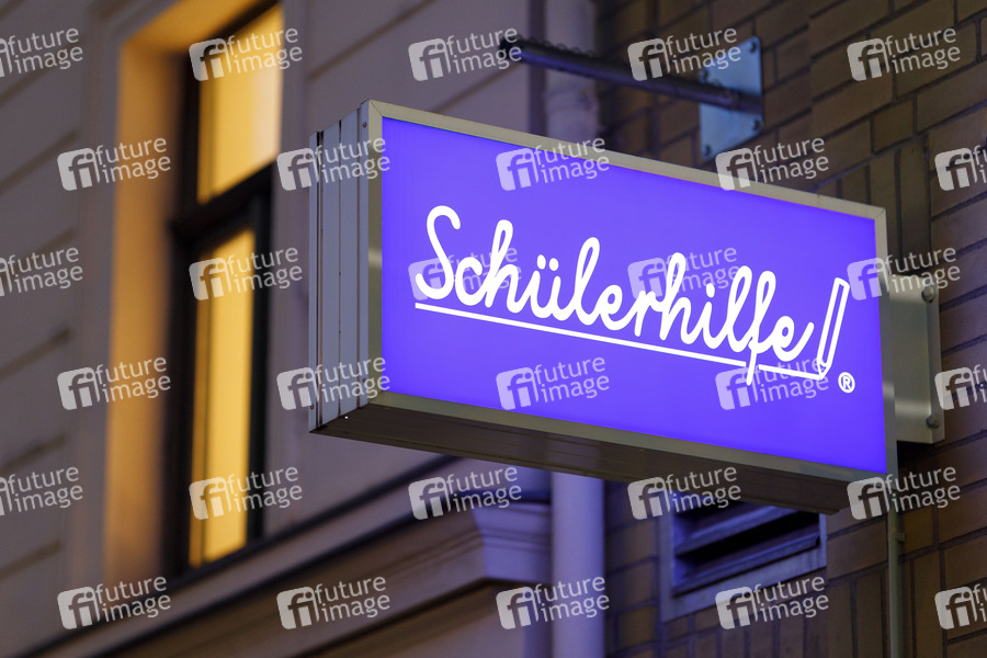 Schülerhilfe ist eine Marke der ZGS Bildungs-GmbH mit Sitz in Gelsenkirchen und gehört neben dem Studienkreis zu den führenden Anbietern von Nachhilfe in Deutschland und Österreich. Im Bild ein Logo einer Zweigstelle in Ehrenfeld. Köln, 09.11.2020