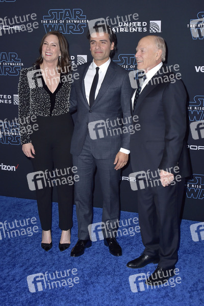 Kathleen Kennedy, Oscar Isaac und Frank Marshall bei der Weltpremiere des Kinofilms 'Star Wars: Episode IX - The Rise of Skywalker / Star Wars: Episode IX - Der Aufstieg Skywalkers' zeitgleich im TCL Chinese Theatre, im El Capitan Theatre und im Dolby Theatre. Los Angeles, 16.12.2019