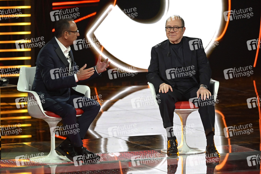 Carlo Conti und Carlo Verdone in der Rai TV-Show 'I migliori anni' in den Fabrizio Frizzi Studios. Rom, 06.04.2024